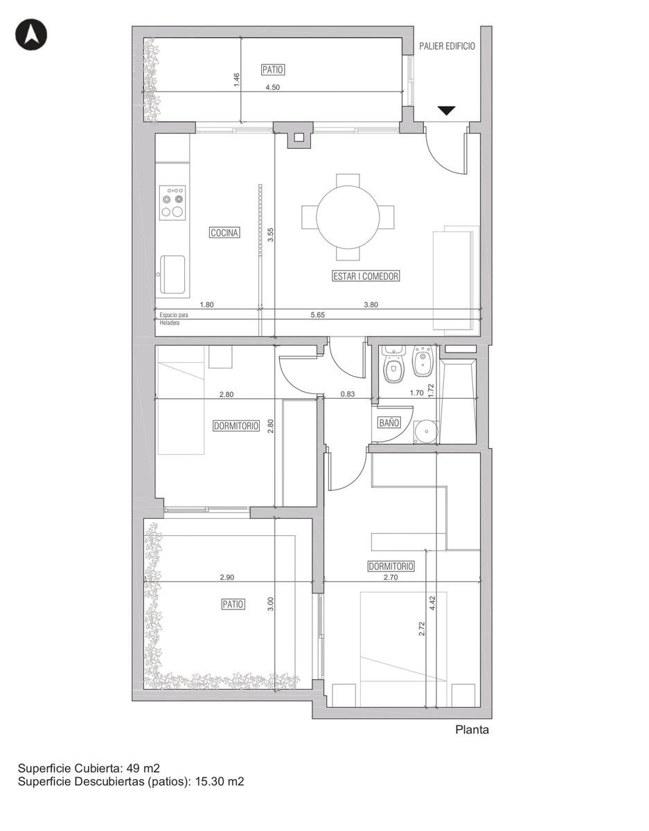 | Mts no cubiertos (mt²) | 15.3 |