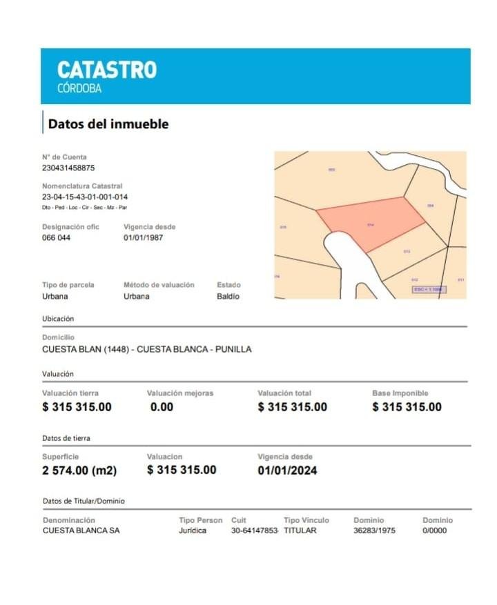 | Ubicación | Cuesta Blanca Punilla Córdoba - Venta Lotes N° 32 Y 44 |