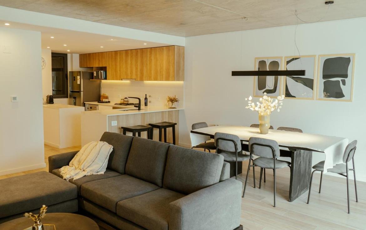 VENTA DEPARTAMENTO 2 DORMITORIOS CON COCHERA SOBRE LA ZONA:Ubicado sobre calle Catamarca, entre Moreno y Dorrego. A sólo 200 metros de Bv. Oroño, zona privilegiada de la ciudad de Rosario. SOBRE EL EDIFICIO:El Edificio TEMPO ofrece 10 pisos en un solo bloque. Cuenta con 19 departamentos de 1, 2 y 3 dormitorios y un ascensor con un diseño moderno y exclusivo. Cocheras en planta baja y subsuelo con portón automatizado con telecomando. Pre - instalación de cargadores para autos eléctricos (no incluye equipos ni cableados). Hall de ingreso con control de acceso y sistema de videovigilancia monitoreado. Pre - instalación de Grupo electrógeno para espacios comunes (no incluye equipos ni cableados). Palier de ingreso a cada departamento con sensor de movimiento para iluminación y luz de emergencia.Amenities: SUM con parrilla, pileta climatizada y solárium con ducha exterior. SOBRE EL INMUEBLE:Departamento semipiso muy luminoso de diseño exclusivo, compuesto por cocina integrada con horno y anafe a gas, mesada y alzada de purastone, muebles de bajo mesada con frente laqueado, alacena con acabado Nebraska natural y pileta de acero inoxidable marca Johnson, living-comedor, 2 baños completos, 1 toilette, 2 dormitorios con interiores de placard instalados -ambos cuentan con vestidor y baño en suite- y balcón al frente. Entre sus terminaciones se destacan: puertas de ingreso blindadas de seguridad con terminación melamínica y modernos herrajes, pisos de porcelanato de primera calidad en todos los ambientes, espacio para extractores semiocultos en alacenas sobre horno y anafe, balcones con vidrios laminados de seguridad, pre - instalación para aires acondicionados Split, pre - instalación de sistema de alarma (equipos y cableados no incluídos), caldera CALDAIA y calefacción por radiadores (radiadores no incluidos). VALOR INCLUYE COCHERA POSESIÓN INMEDIATA