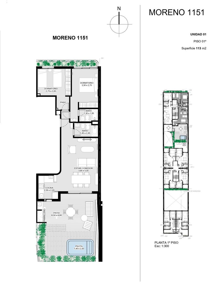 | Ubicación | Moreno 1151 01 01 - Venta Departamento 2 Dormitorios Con Patio Y Pileta |
