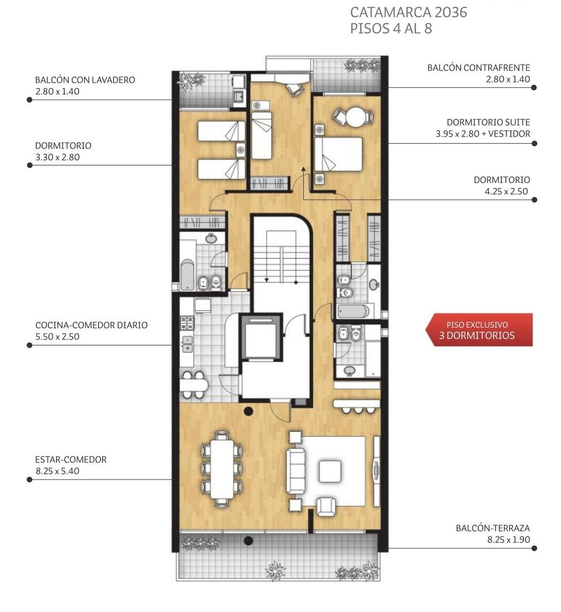VENTA DEPARTAMENTO SEMIPISO 3 DORMITORIOS CON COCHERA - CENTRO, ROSARIO SOBRE LA ZONA: Ubicado en zona inmejorable de la ciudad, de entorno predominantemente residencial, a pocos metros de la costanera y de Bv. Oroño. Zona ideal para esparcimiento, importante corredor gastronómico y comercial de la ciudad. Vía rápida de salida a los distintos puntos de la ciudad y hacia fuera de la misma. SOBRE EL EDIFICIO: Edificio con detalles de categoría con ascensor de última generación, compuesto de planta baja y 8 pisos. Hall de ingreso con sistema de seguridad inteligente. Cocheras opcionales. Portón de ingreso con control remoto. Amenities: quincho y solarium. SOBRE EL INMUEBLE: Departamento compuesto por cocina integrada con amoblamiento completo, balcón/terraza al frente y balcón con lavadero en contrafrente, sala de estar-comedor, 3 dormitorios -uno de ellos con vestidor en suite- y 3 baños con todos los artefactos y accesorios colocados, con bañera de hidromasaje y platos de ducha. Detalles de terminaciones: - Amplios balcones-terraza al frente y contrafrente- Pisos de porcellanato o flotantes melaminicos de alto tránsito- Paredes pintadas al látex, colores a elección- Molduras de yeso en cielorrasos-Cocina totalmente equipada con bajo-mesadas y alacenas. Purificador de aire con salida al exterior- Calefacción por caldera con radiadores- Cocina de acero inoxidable con encendido electrónico y horno-visor. Mesada de granito- Baños totalmente terminados con todos los artefactos y accesorios colocados. Bañeras de hidromasaje y platos de ducha- Revestimientos en porcelanato y cerámicos- Aberturas exteriores de aluminio anodizado con DVH (doble vidrio hermético)- Puertas interiores de madera- Placares con interiores totalmente terminados- Conductos para cable TV y teléfono en todos los ambientes VALOR INCLUYE COCHERA OPCION DE 4 DORMITORIOS IMÁGENES ILUSTRATIVAS